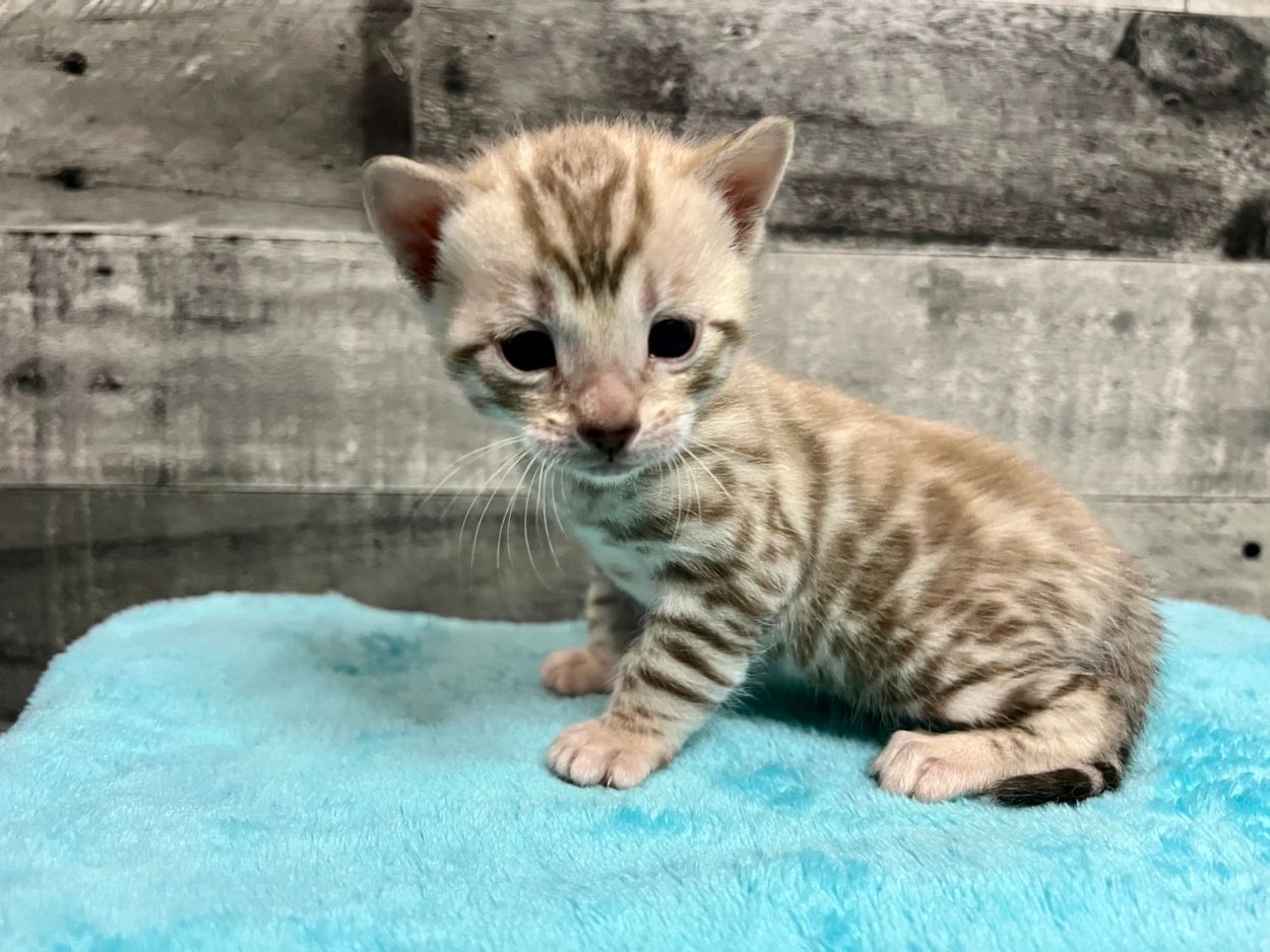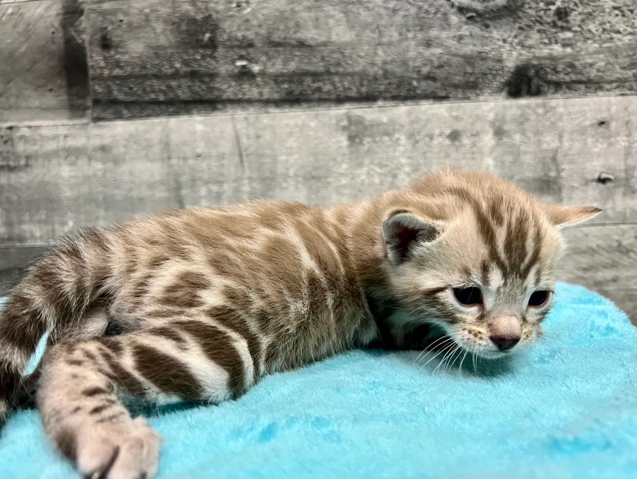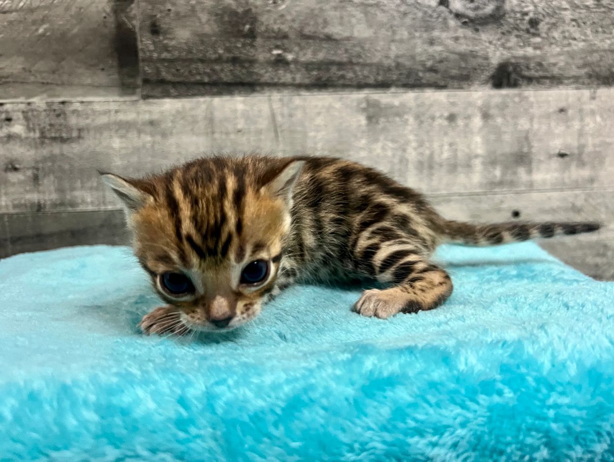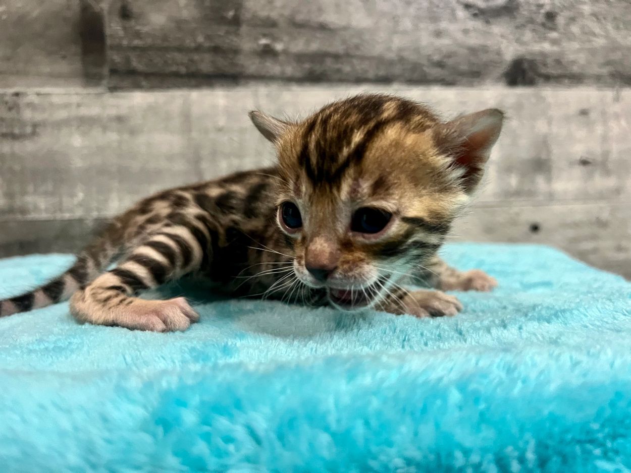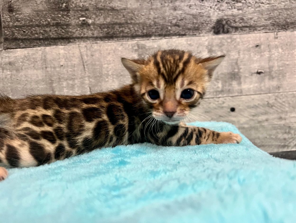Born February 13, 2023. These kittens have super large, contrasting rosettes. Ready for their new homes May 2023.